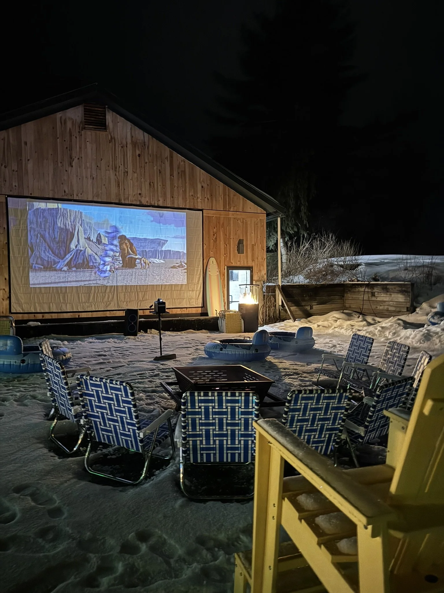 That evening, we also took part in the Subzero Surf Club outdoor event hosted at the lodge. Standing outside with snow falling, bundled up and sipping spiked hot cider, felt like a true winter-lodge experience and added such a fun, social element to the stay.